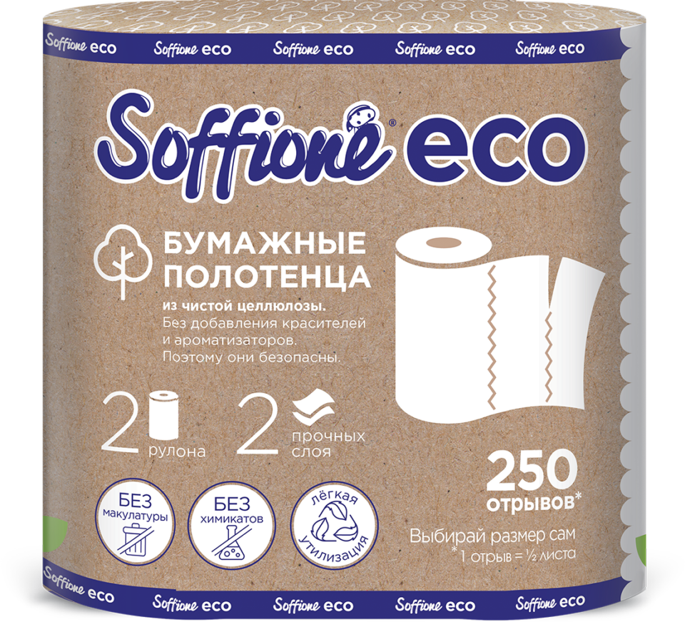 Белые двухслойные бумажные полотенца в экологичной бумажной упаковке