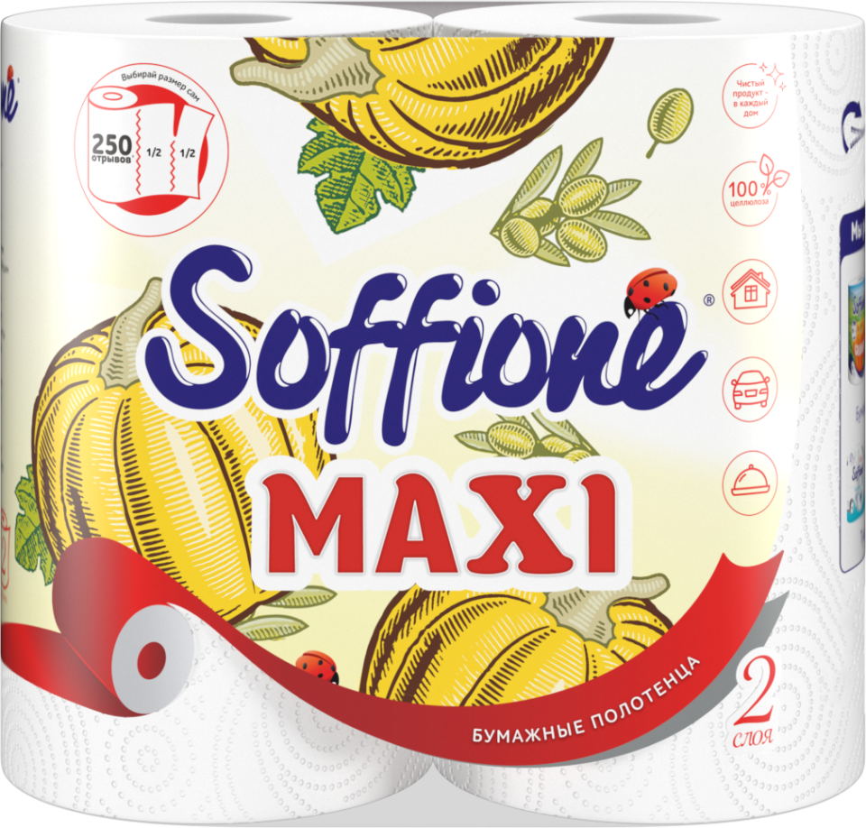 Двухслойные бумажные полотенца в удобном формате большого рулона.