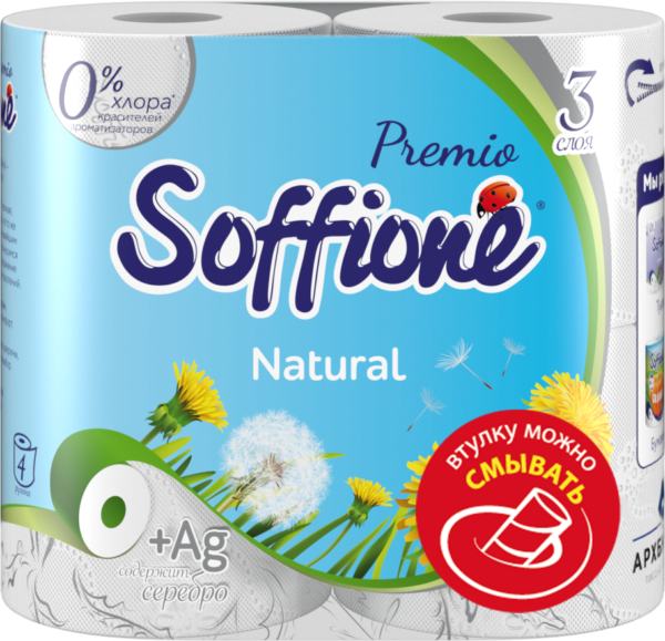 Белая двухслойная туалетная бумага с оригинальным голубым тиснением. Не ароматизированная.